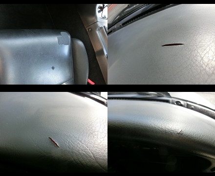 内装では、ダッシュパネルに傷割れ、左右ドアトリムに垂れ、トップ左右の内張りに垂れあります。