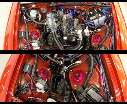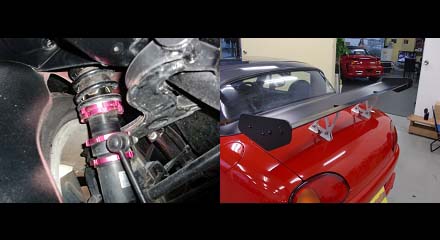 このカプチーノは、ボディ程度が良くエンジンルームなど新車を思わせる位綺麗です、またボディ自体の経たりもそれ程感じません、足回りは、ほぼ新品のTAKEOFFCRF車高調が装備されていますのでスポーツ感溢れる走りが楽します。
