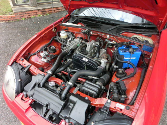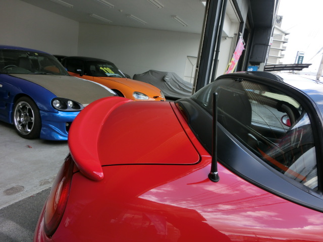 外装はフロントバンパー リアスポイラー ドアミラー ボンネット以外はオリジナルペインティングです。ちなみにボンネットは新品交換ですが、多少色灼けしています。