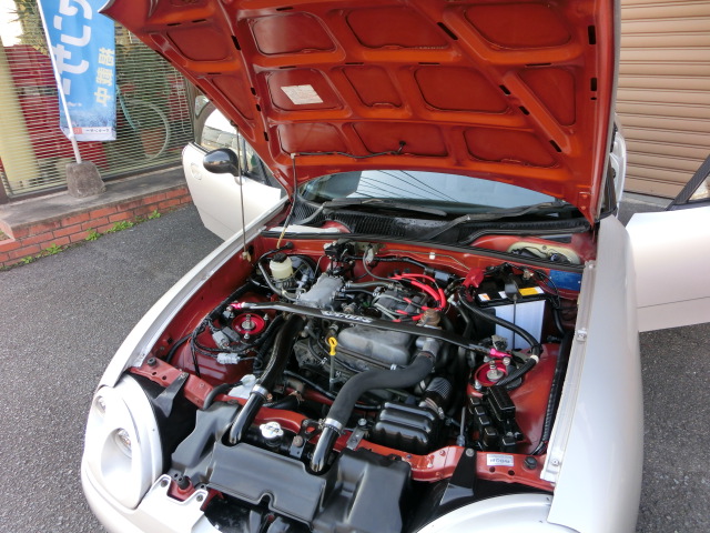 外装も新車時のオーナー様が17年かけて少しづつカスタムされており、今では希少なスズキスポーツのリップスポイラーやハートランドのフロントクリアレンズが装着され、エリートSPL製本物のHIDヘッドライトまで装備されていますので、豪華絢爛満足度はかなり高いレベルではないかと思います。