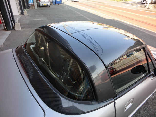 新車時のオーナー様ともお話をしたことが有り、地元のディーラーで最後の1台だったらしく元色は赤、本当はシルバー希望だったとのことで新車購入後直ぐに前期のサテライトシルバーに色変えオールペンをされています。24年経過しておりますが全体的にキレイな状態を保っています。H26年に当店にてフロントリップスポイラーを修正塗装、リアガーニッシュ周りに元色の赤が見えていたのでその部分を修正塗装いたしましたが他は色変え当時のあまです、気になる点としては、Bピラーに少し塗装浮き、ボンネットSマーク付近に塗装のくすみがございますがそれ程きになるものでは無いと判断しそのままにしています。