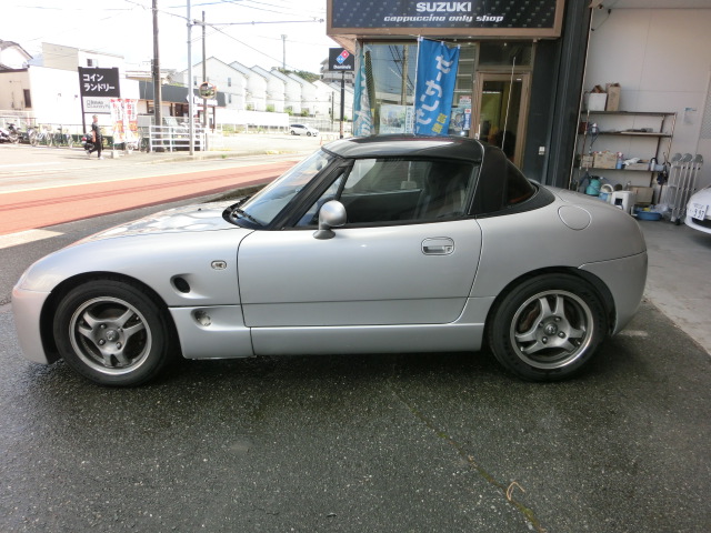 このカプチーノは12年間当店でメンテナンスを行い一度はフルメニューでブッシュ交換や下回りのリフレッシュ、オールペイントを行いましたが今回他のお車にお乗り換えの為手放されることになりました。