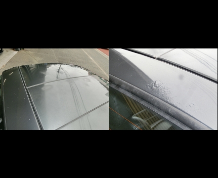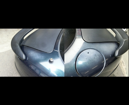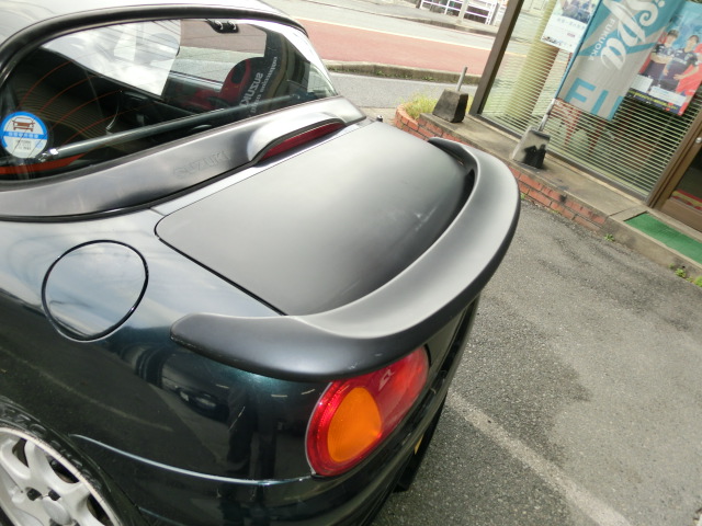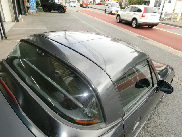 フロント左フェンダー自家塗装、フロント右フェンダー上クリアやや劣化、トップ3枚クリアやや劣化Bピラーはアルミ特有の浮き錆、クウォーターパネル左右上クリア白ボケクリア劣化、トランクとリアスポイラーはマッドブラック塗装でやや色落ち有り