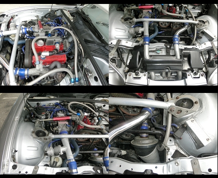 エンジンルームのハーネスはフロントメンバーの中を通しておりボンネットを開けても