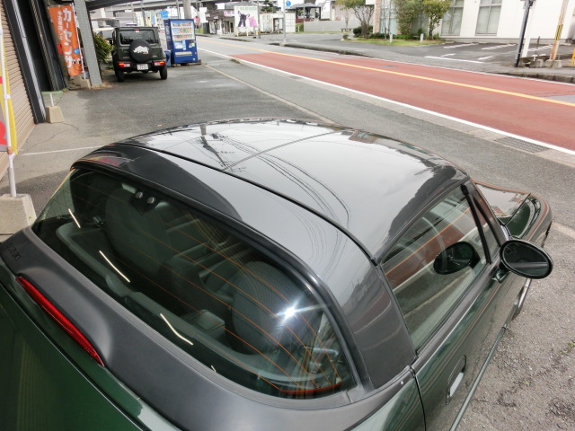 屋根は付いていたとの事ですが、カバーを掛けていた為、塗装表面は小傷が目立ち、リアクウォーター、トランク一部、給油口の縁にブリスターが出ていました。
