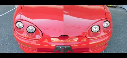 5年前と違う所は、フロントに修復が有ることと、それに伴いボンネット、フロントフェンダー、ヘッドライト、フロントバンパーが社外品に交換して有ります。