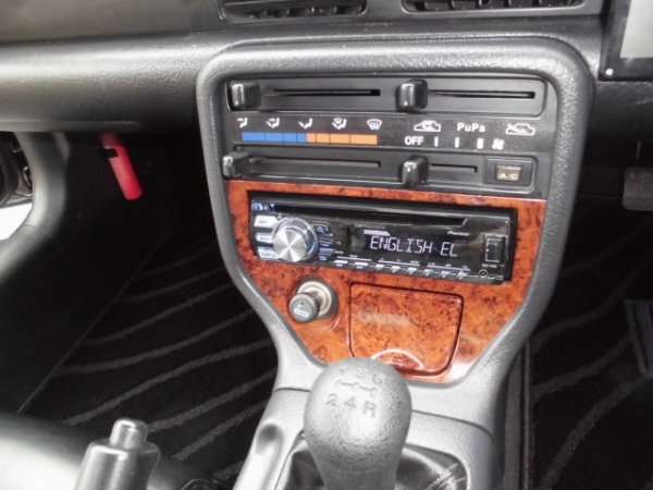 内装は、運転が楽しく、またレーシーな雰囲気を出す為に、Defiの4連メーターを取り付けました。ダッシュパネルは補強の為トヨシマ製FRPダッシュパネルに合皮を貼って装着しています。