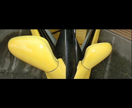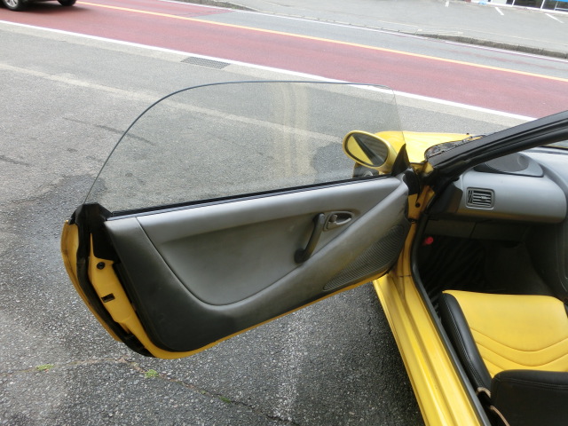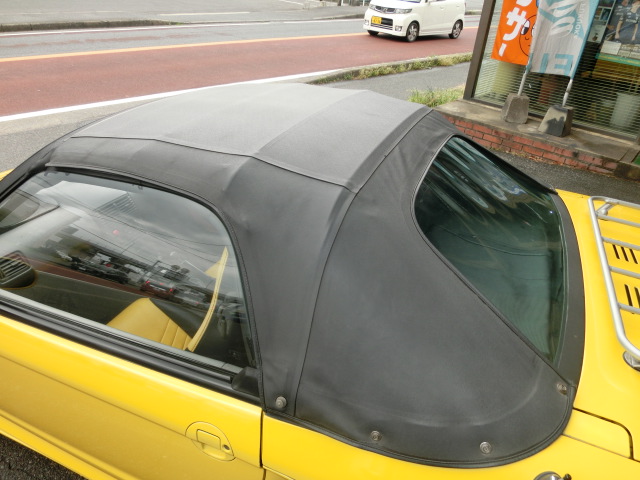 、外装は、ウィンドウ回りのシールにビート特有のヒビ、フロントバンパーとリアバンパーの色の劣化、ボンネットと右側ドア再塗装の跡等がございます。また小さな傷エクボ、左後ろ下サイドステップの被さる部分に凹み(オプションの最後の画像)ドアミラークリア剥がれもございます。