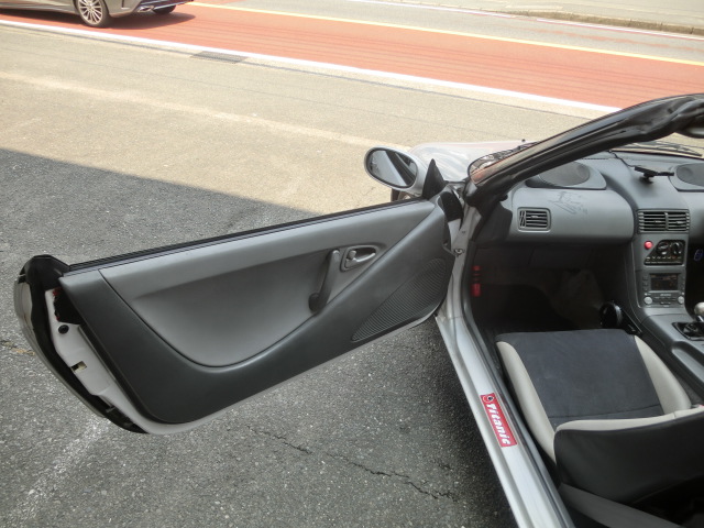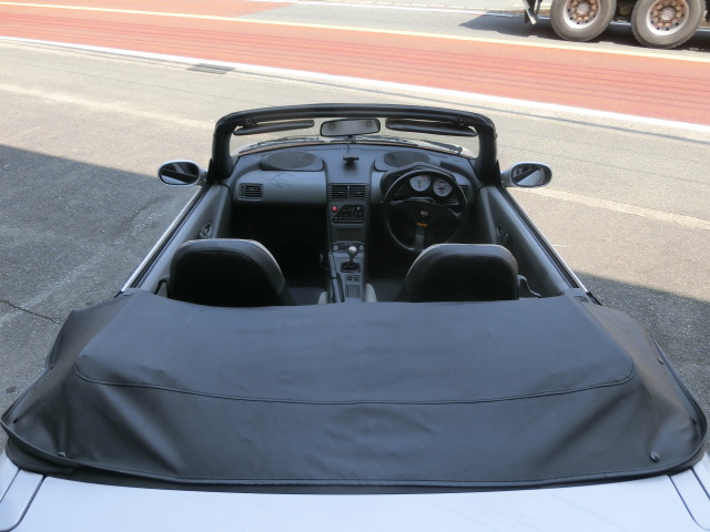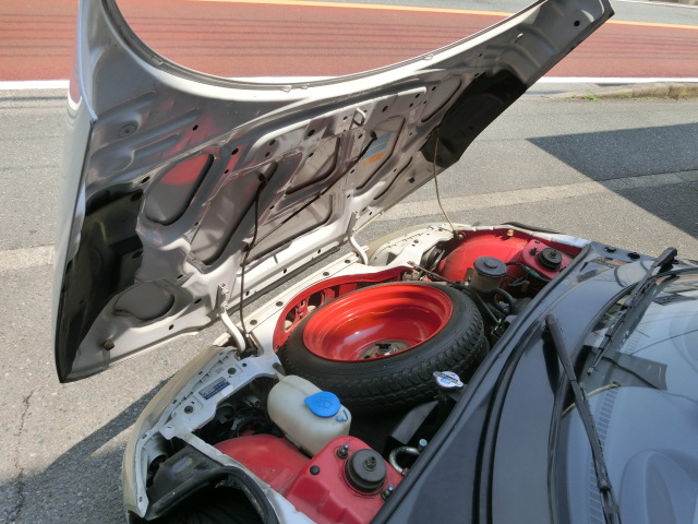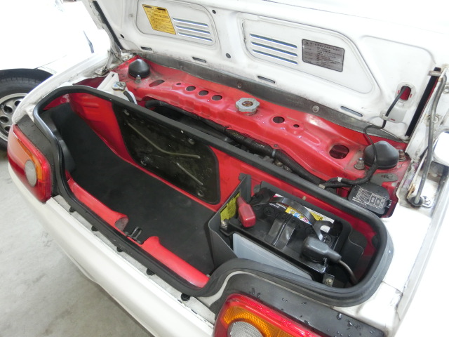 ボディは赤から色変えパールホワイトでそれなりの仕上がりです。リア左フェンダーアーチ部に塗装浮きがございます。全体的に小傷やエクボ等ございますが中古車レベルといたしましては綺麗な方かと個人的には思いますが、気になる方は現車確認にご来店下さい。メールでの外装の質問は構いませんが画像などの送付は100%状態が伝わりませんのでご遠慮くださいますようお願いいたします。