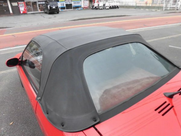 外装は、フェラーリレッドでオールペンされており、大きなキズや凹みは一切ございません。リアスクリーンは、まだまだ透明度は有りますので問題ございません、ホロは多少縮はございます。