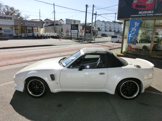ユーノスロードスターH3年式5MT 公認ワンオフワイドボディのご紹介です。